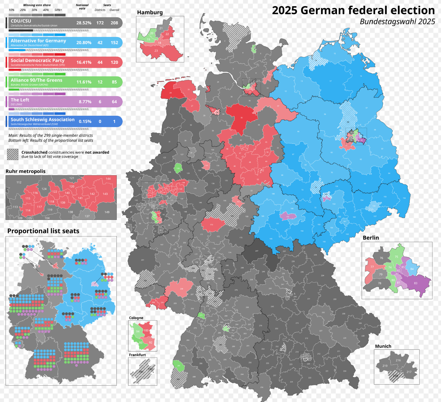 This image is from 2025 and shows the result of the elections held in Germany last February 23. The division is evident to everyone. The borders are the same as they were before the fall of the wall. The bricks are no longer there, but in the vast majority of the former GDR, the AfD won.