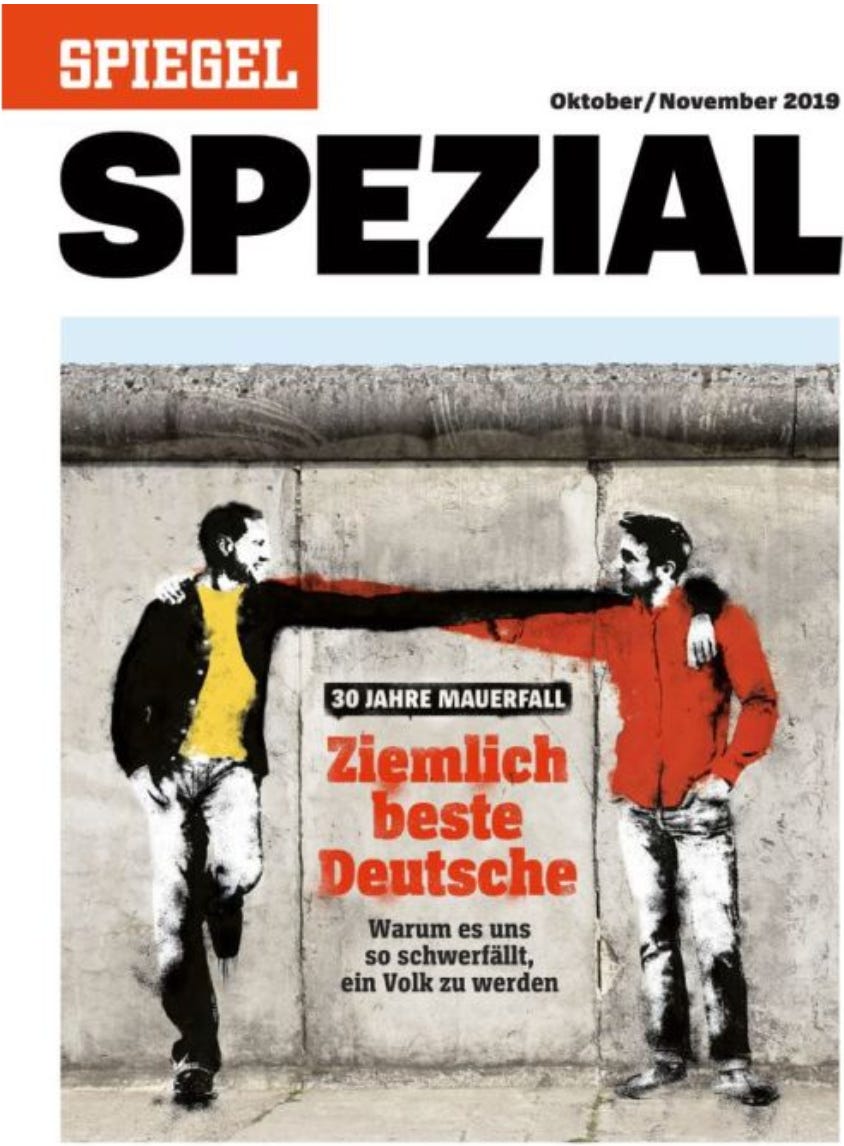 Der Spiegel, on the thirtieth anniversary of the fall of the wall, titled “Ziemlich beste Deutsche”. Playing on the German title of the film “Intouchables”, making it “almost better Germans”.